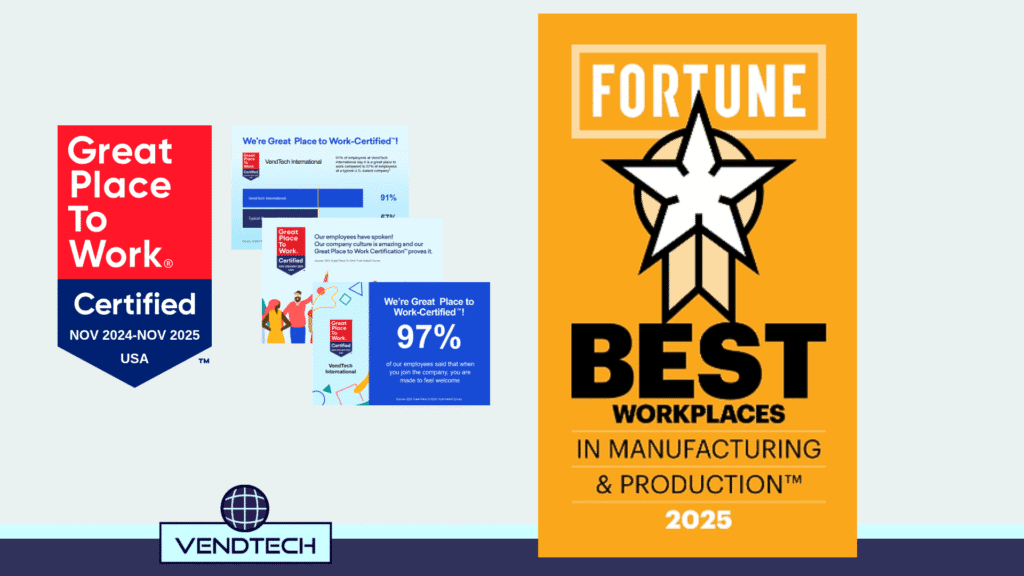 VendTech International, a leader in vending and self-service solutions, has been recognized as one of Fortune’s Best Workplaces in Manufacturing & Production for 2025, ranking 19th. Jonathan Beck, Director of Human Resources, emphasized that the award celebrates the company’s people and culture: “Every achievement we celebrate is built on the hard work, talent, and commitment of our employees… what makes VendTech International/Naturals2Go not just a workplace, but a community.” This recognition highlights VendTech International’s dedication to employee engagement, innovation, and excellence in the vending industry.